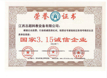 榮譽(yù)證書(shū)江西志超科教設(shè)備有限公司