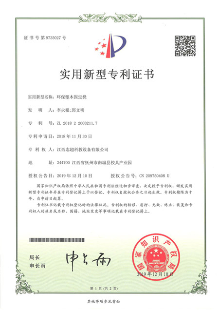 可調(diào)式座椅實(shí)用新型專利證書江西志超科教設(shè)備有限公司