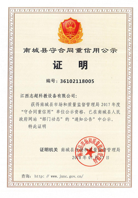 守合同重信用證明江西志超科教設(shè)備有限公司