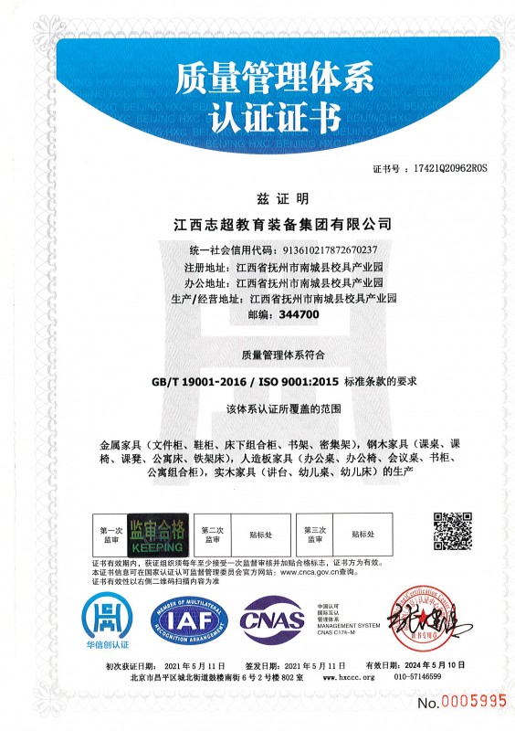 質(zhì)量管理體系認(rèn)證證書江西志超科教設(shè)備有限公司