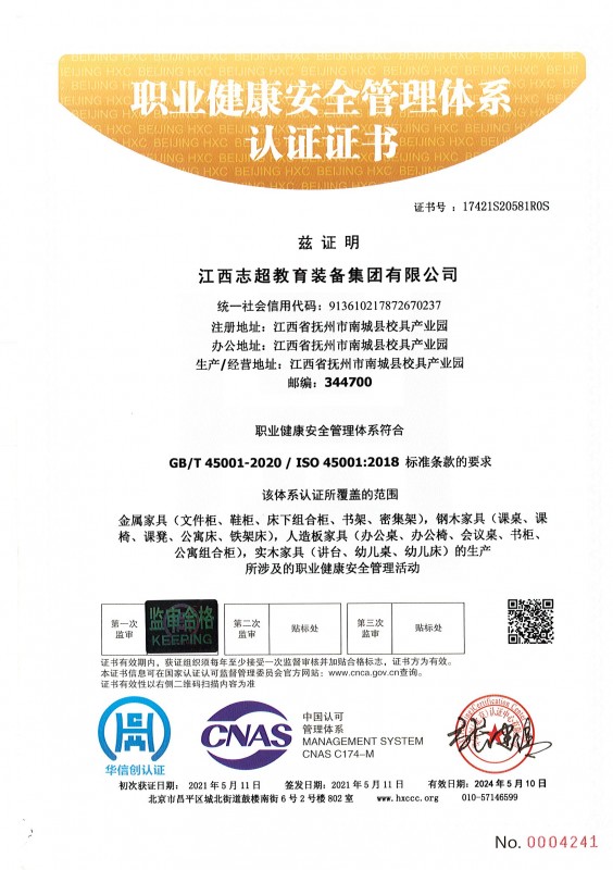 職業(yè)健康安全管理體系認(rèn)證證書江西志超科教設(shè)備有限公司
