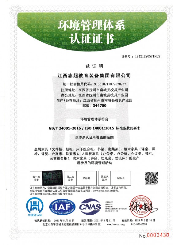 環(huán)境管理體系認(rèn)證證書江西志超科教設(shè)備有限公司